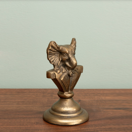 Decoro a forma di busto di elefante in metallo con effetto ottone anticato