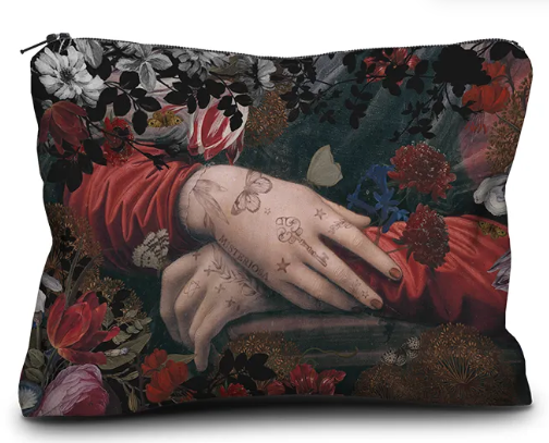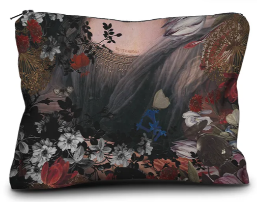 Stampato su tessuto in velour di poliestere a doppia faccia con fodera interna nera.