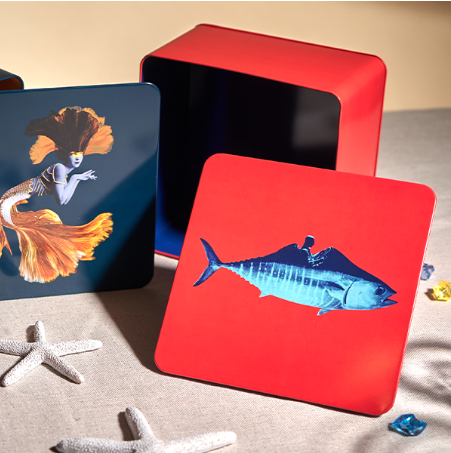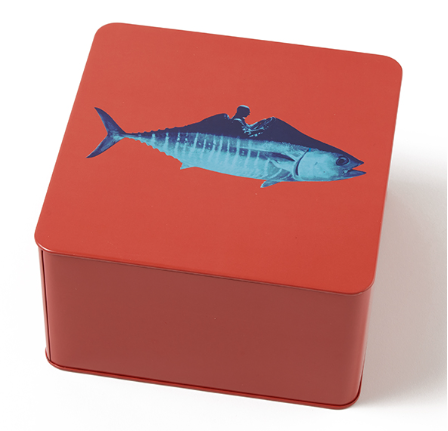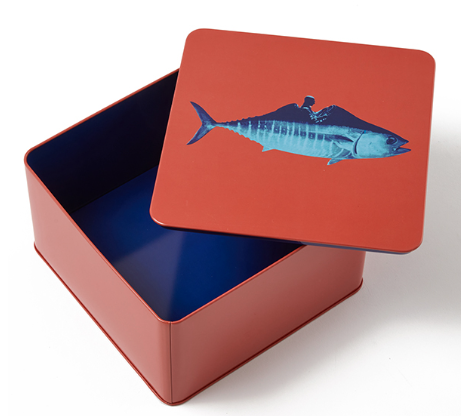 Scatola di metallo con coperchio e con colore a contrasto interno