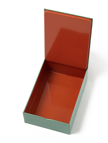 Scatola di metallo con coperchio e con colore a contrasto interno
