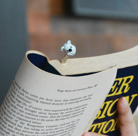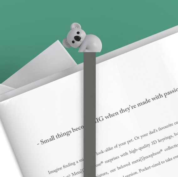 Segnalibro in metallo e zinco con personaggio in 3D che sporge dalla pagina molto comodo e facile da usare.