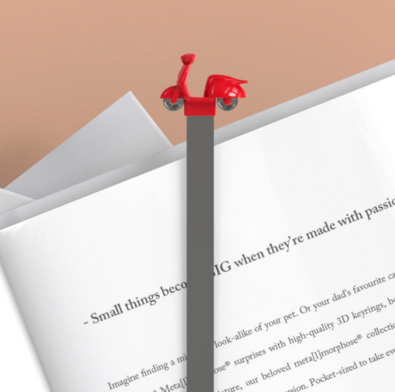 Segnalibro in metallo e zinco con personaggio in 3D che sporge dalla pagina molto comodo e facile da usare.