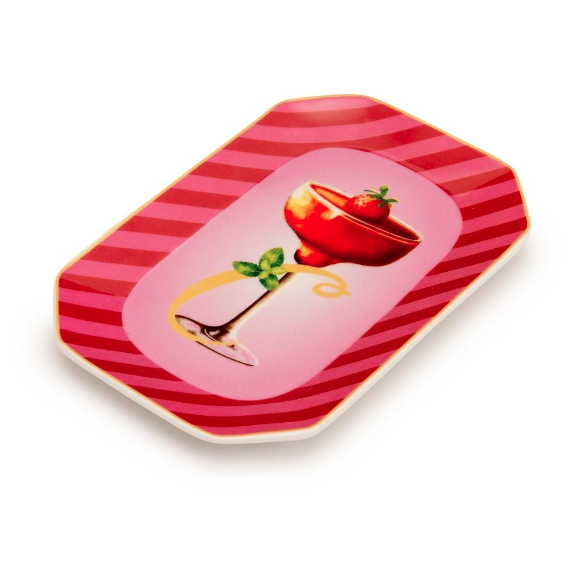 Ogni vassoietto raffigura un cocktail iconico con dettaglio artistico e colori brillanti: