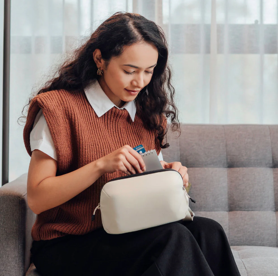 Tasca frontale di facile accesso Una cerniera curva dal design intelligente consente un’ampia apertura, una maggiore visibilità e un facile accesso agli oggetti essenziali, senza il rischio che cadano.